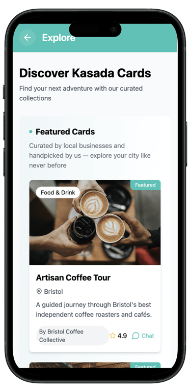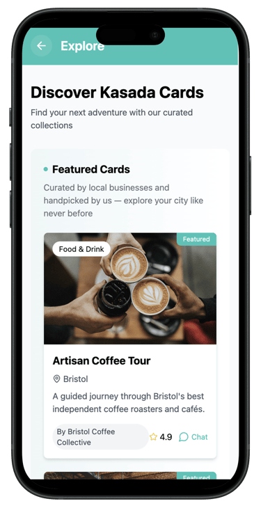 Explore your city through featured Kasada Cards, curated by local businesses and selected by Kasada.