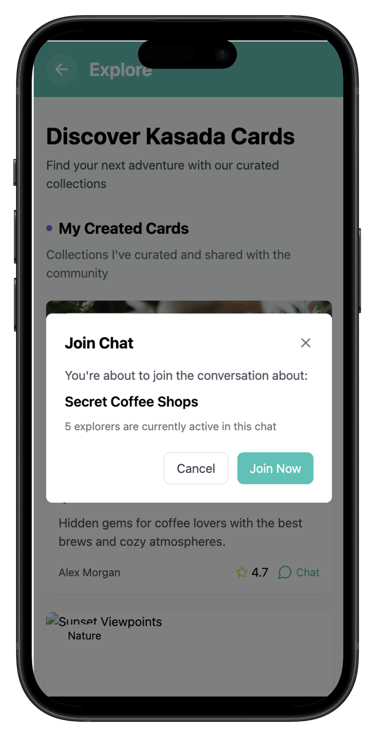 Join Kasada chats, discover local spots, and meet people who share your passions.